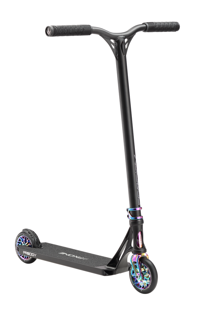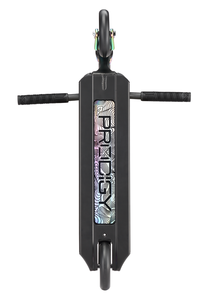 The Prodigy X ONE - PX ONE for short is the eleventh series in the PRODIGY line, built upon 10 generations and 14 years of professional- level complete scooters. The massive upgrades from PX continue including - Extech extrusion with its stealth lower profile, wider internal walls, boxier construction featuring a high responsive concave. The deck is still with its wider dimensions 5” W x 19.5” L The PX Headtube has been refined maintaining its increased contact with the deck with a now added durable anchoring weld to ensure this deck can take anything you throw at it. , Grip tape with increased grit count, Durable nylon deck plugs and V2 Nylon brake system, IHC LOW stack headset compression cap with pro level bearings to keep you spinning with all of it rolling on the SECTOR 120mm x 26mm PU wheels 86A.
