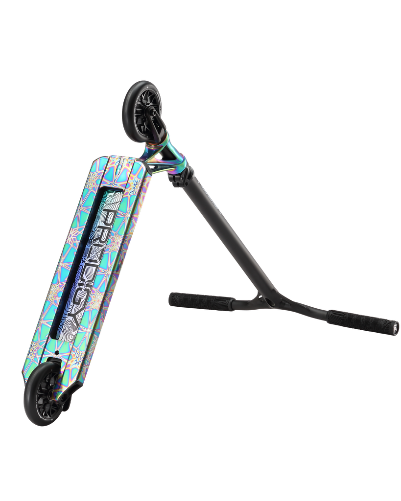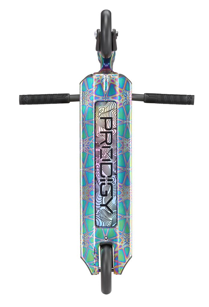 The Prodigy X ONE - PX ONE for short is the eleventh series in the PRODIGY line, built upon 10 generations and 14 years of professional- level complete scooters. The massive upgrades from PX continue including - Extech extrusion with its stealth lower profile, wider internal walls, boxier construction featuring a high responsive concave. The deck is still with its wider dimensions 5” W x 19.5” L The PX Headtube has been refined maintaining its increased contact with the deck with a now added durable anchoring weld to ensure this deck can take anything you throw at it. , Grip tape with increased grit count, Durable nylon deck plugs and V2 Nylon brake system, IHC LOW stack headset compression cap with pro level bearings to keep you spinning with all of it rolling on the SECTOR 120mm x 26mm PU wheels 86A.