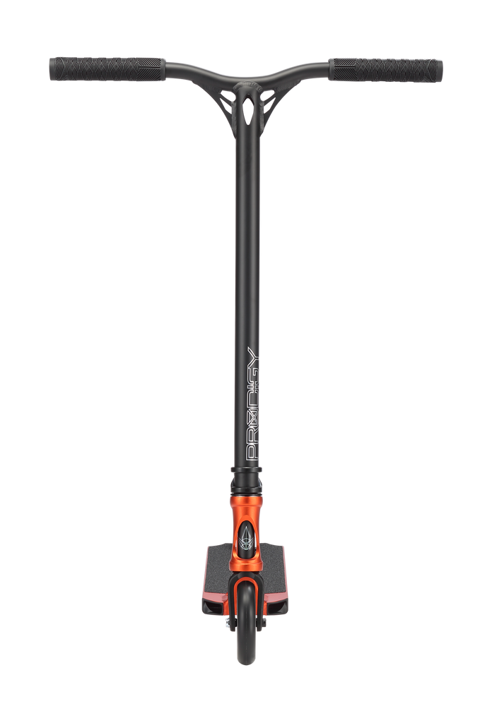 The Prodigy X ONE - PX ONE for short is the eleventh series in the PRODIGY line, built upon 10 generations and 14 years of professional- level complete scooters. The massive upgrades from PX continue including - Extech extrusion with its stealth lower profile, wider internal walls, boxier construction featuring a high responsive concave. The deck is still with its wider dimensions 5” W x 19.5” L The PX Headtube has been refined maintaining its increased contact with the deck with a now added durable anchoring weld to ensure this deck can take anything you throw at it. , Grip tape with increased grit count, Durable nylon deck plugs and V2 Nylon brake system, IHC LOW stack headset compression cap with pro level bearings to keep you spinning with all of it rolling on the SECTOR 120mm x 26mm PU wheels 86A.