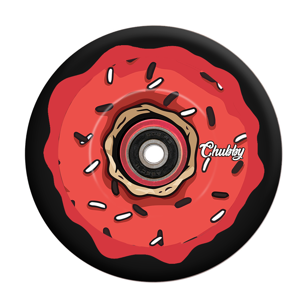 Bei den Scooter-Rädern von Chubby Doughnut handelt es sich um hochwertige 110-mm-Airride-Räder mit Hydro-Aufdruck, sowohl auf dem Rad als auch auf dem PU in Sonderfarbe.