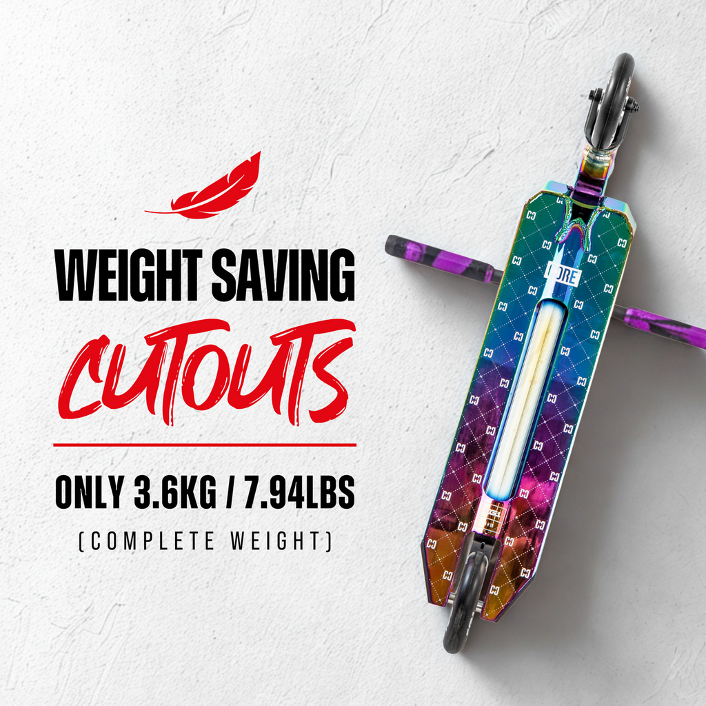 Sans aucun doute, chaque élément de ce scooter a été conçu sur mesure par les concepteurs de CORE pour vous offrir le meilleur scooter possible. Nous avons réduit le poids partout et utilisé des pièces de rechange de qualité professionnelle.